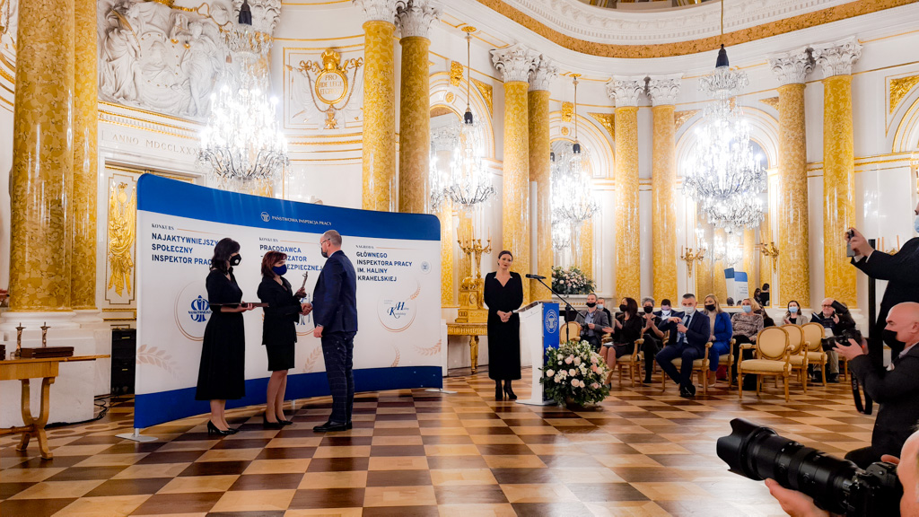 IBOMBO 作为全波兰 九家获奖企业之一,荣获由国家劳动监察局举办的第28届“安全工作雇主组织者”竞赛奖项。颁奖典礼在华沙皇家城堡举行,现场有国家政府代表出席。